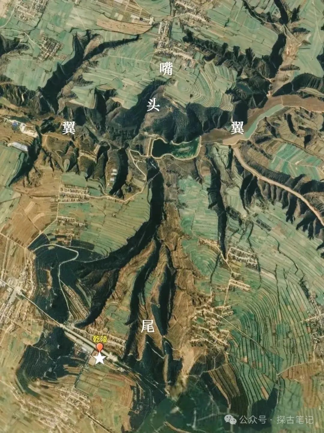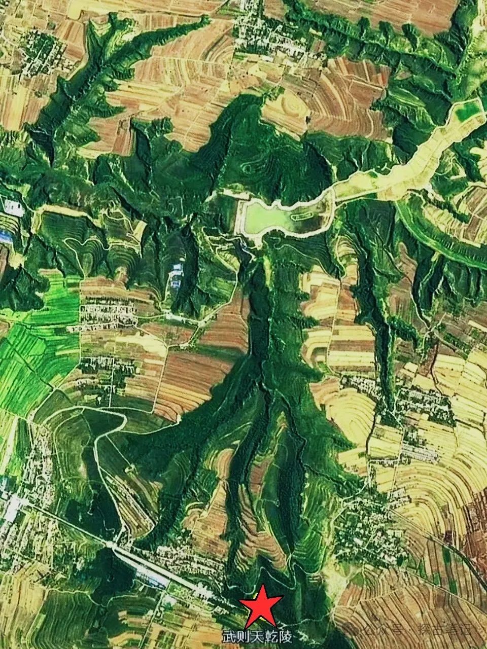 卫星视角看武则天乾陵,太震撼了!好似一只大大的凤凰。